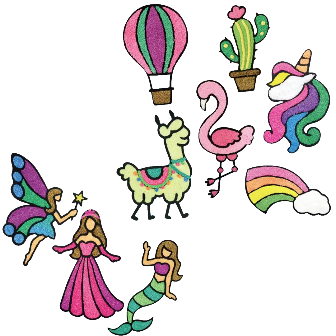 Space Adventure, Wonderland, Yummy Treats, Dino Pals, Princess, Aqua World, Unicorn, Butterfly, Rocket, Ice Cream