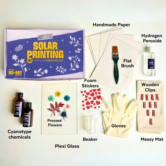 Dive into the captivating world of art and science with DIY Solar Printing Cyanotype Kit! Perfect for both kids and adults, this kit combines creativity with scientific principles to produce stunning blue prints through a unique and historical printing process.